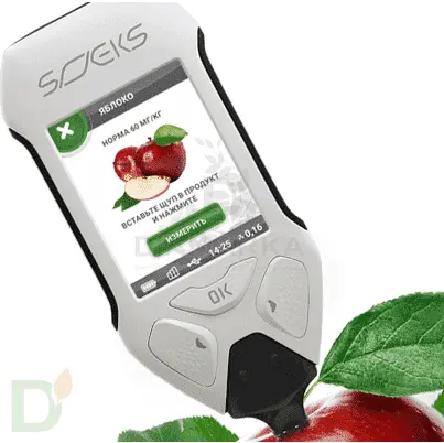 • Прибор не только показывает результаты, но и сравнивает их со значениями нормы. Для воды помимо численного значения пишет мягкая она или жёсткая, для продуктов - в норме ли содержание нитратов. Фон экрана при этом краснеет или зеленеет;