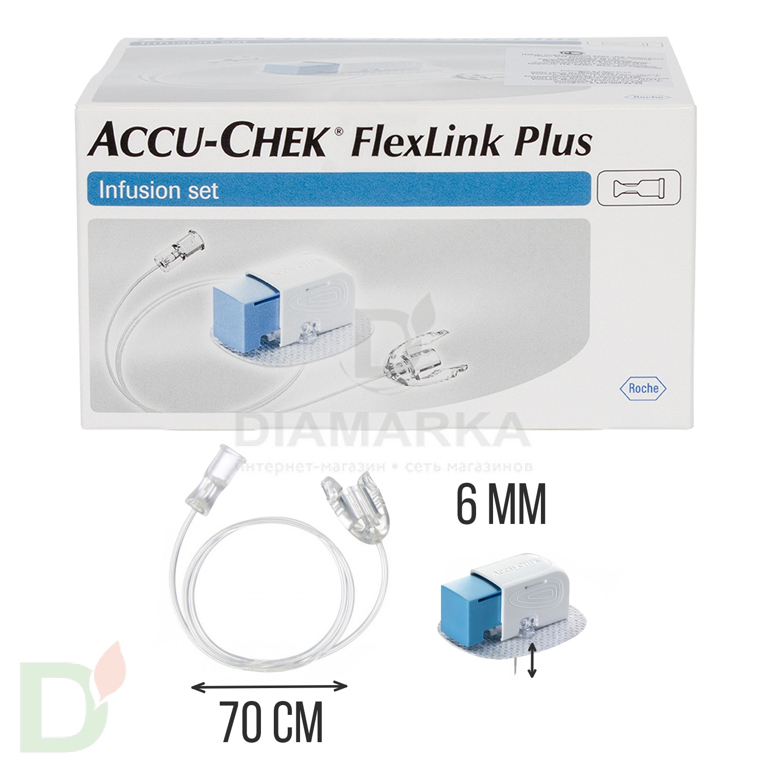 Инфузионный набор Accu-Chek FlexLink Plus 6/70. ( Длина иглы 6 мм. длина катетера 70 см)