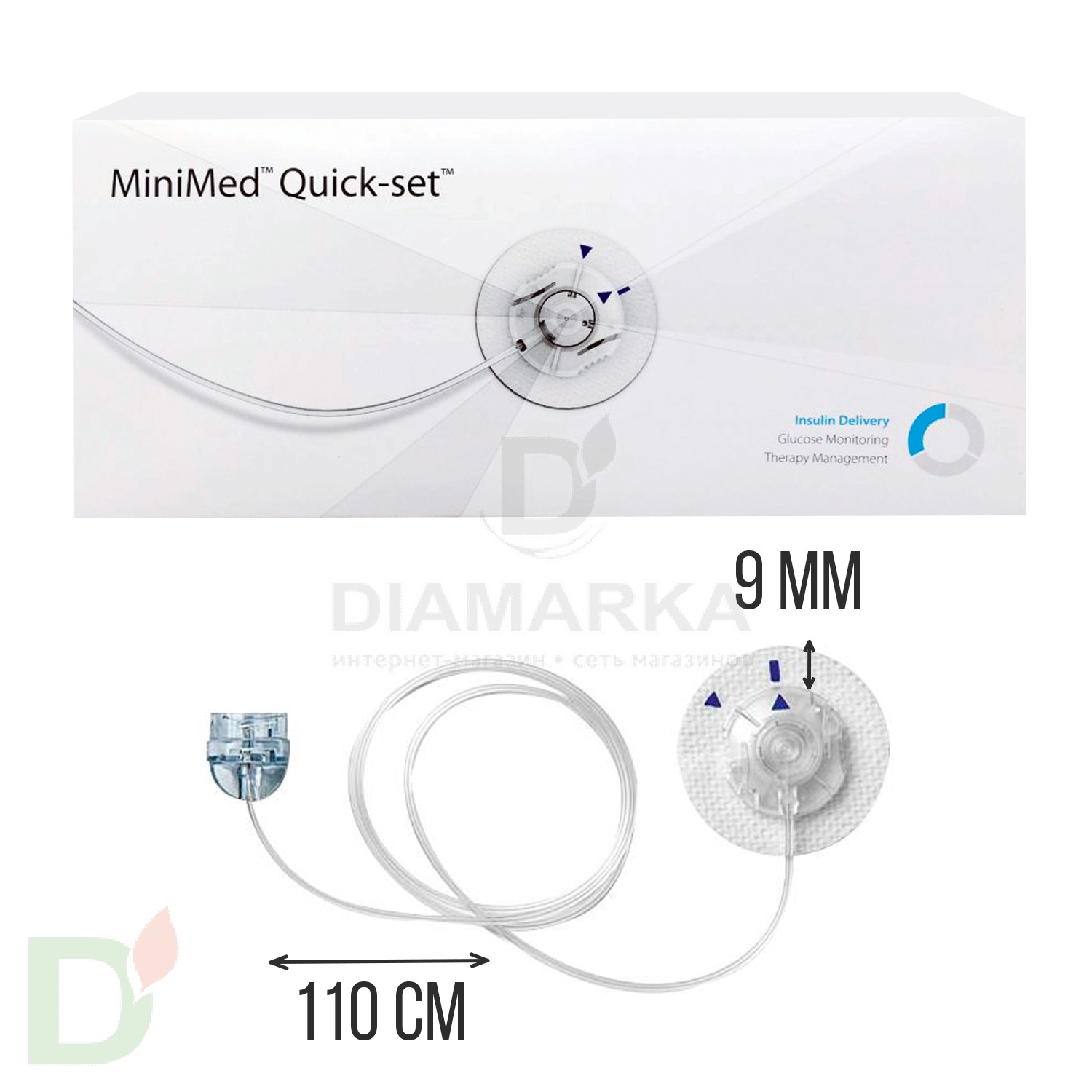 Квик Сет – это одноразовое инфузионное устройство, предназначенное для подкожного введения инсулина, подаваемого из резервуара инсулиновой помпы Paradigm MMT-712, Paradigm Real Time MMT-522, Paradigm Real Time MMT-722 и Paradigm Veo MMT-754.