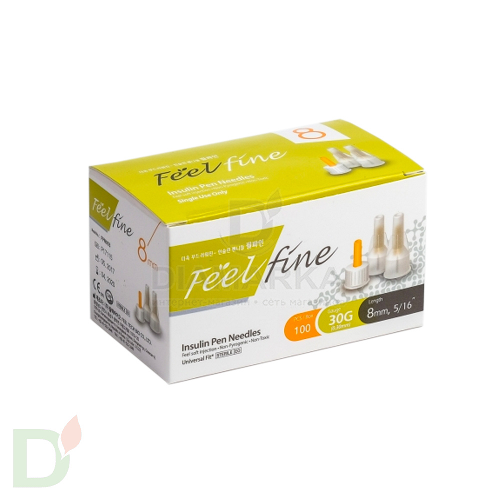 Иглы ФилФайн (FeelFine) 30G, длина 8 мм, 100 штук, для шприц ручек