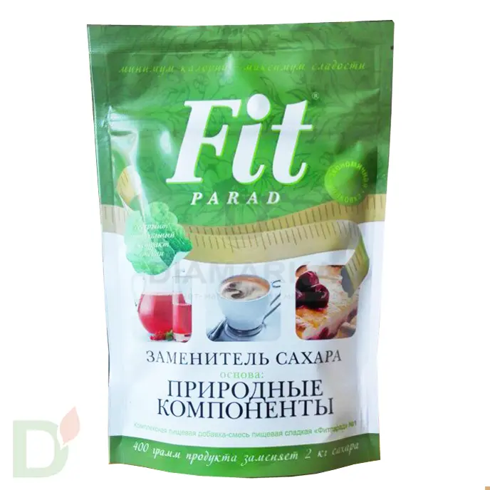 1 г смеси ФитПарад №1 заменяет 5 г сахара, то есть 200 грамм продукта заменяет 1 кг сахара. Смесь подсластителей ФитПарад №1 может использоваться в производстве продуктов для больных сахарным диабетом, а также для целевой группы потребителей, следящих за своим весом.